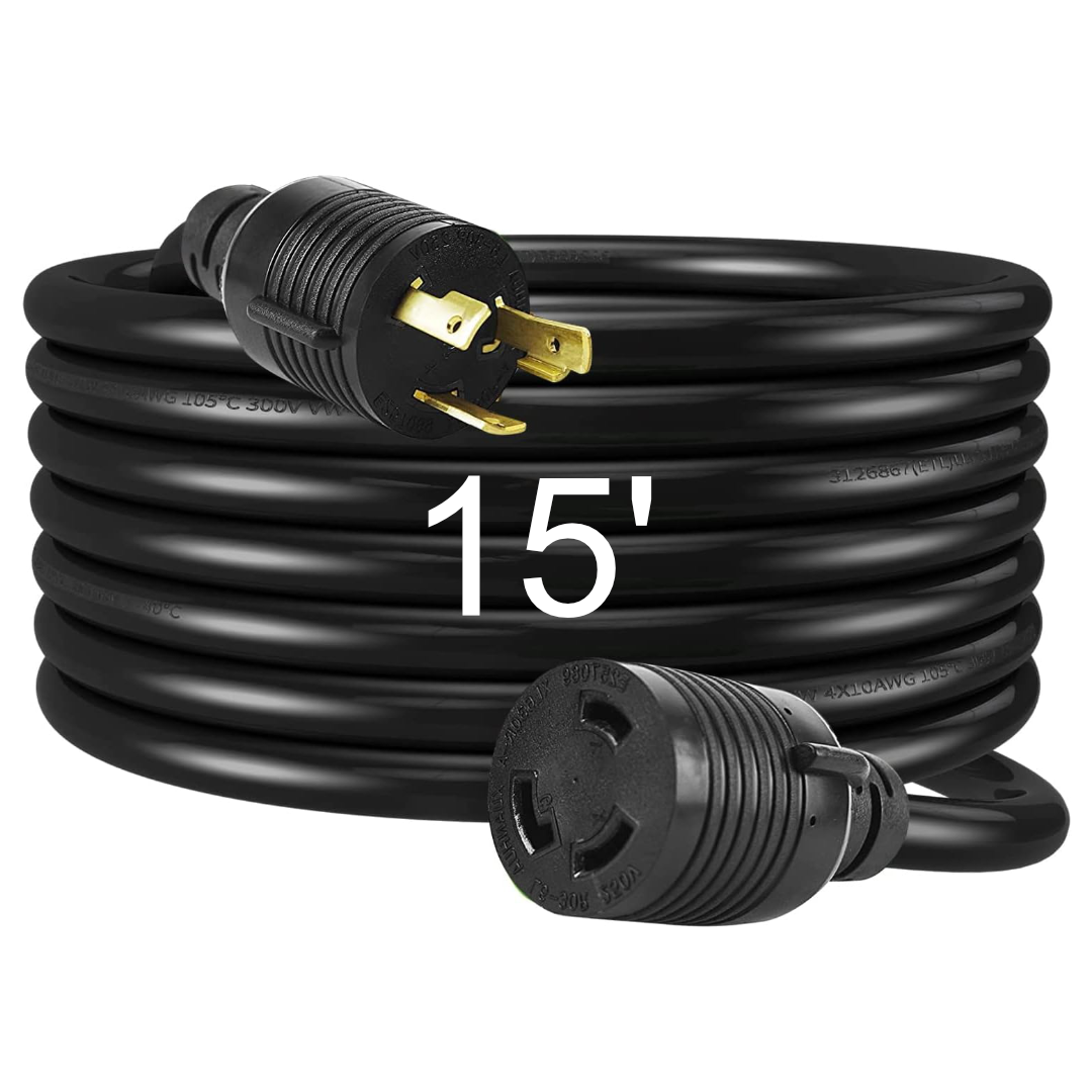 - HEAVY DUTY-Featuring an L6-30P to L6-30R twist extension cord with SJTW 10GUAGE 25FT 30A 250V